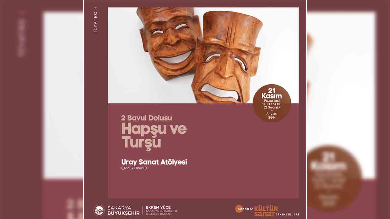 Sakarya Büyükşehir Belediyesi Kasım kültür sanat etkinlikleri tiyatro gösterimi ile devam edecek. 21 Kasım Pazartesi günü Akyazı Sosyal Gelişim Merkezi’nin ev sahipliği yapacağı gösterimde Uray Sanat Atölyesi tarafından ‘2 Bavul Dolusu Hapşu ve Turşu’ isimli çocuk oyunu sahnelenecek. 11.00 ve 14.00’da iki seans olarak gerçekleştirilecek gösterimlerde minikler güzel bir gün geçirecek.