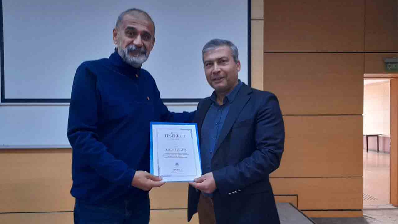 Söyleşi, İletişim Fakültesi Dekanı Prof. Dr. Yusuf Adıgüzel’in Medyabar Kurucusu Zafer Tokuş’a teşekkür belgesi vermesinin ardından sona erdi.