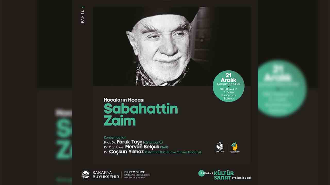 Sakarya Büyükşehir Belediyesi Aralık kültür sanat etkinlikleri ‘Hocaların Hocası Sabahattin Zaim’ adlı panel ile devam edecek. 21 Aralık Çarşamba günü SAÜ Hukuk Fakültesi Sabahattin Zaim Konferans Salonu’nda gerçekleştirilecek program 14.00’da başlayacak. Panelde İstanbul İl Kültür ve Turizm Müdürü Dr. Coşkun Yılmaz’ın yanı sıra Prof. Dr. Faruk Taşçı ve Dr. Öğr. Üyesi Mervan Selçuk konuşmacı olarak yer alacak. Kültür ve Sosyal İşler Dairesi Başkanlığından yapılan açıklamada panele tüm kültür sanat dostları davet edildi.