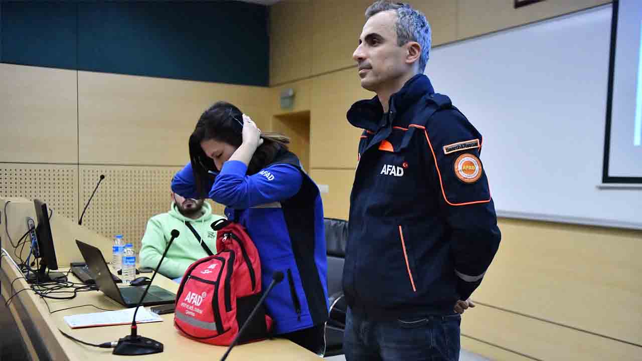 Doğal afetlerde zeminin sağlamlığının öneminden bahseden AFAD Arama Kurtarma Teknisyeni Bülent Doğru, sağlam binada yaşamanın önemine değinerek afet sonrası ilk 24 saatte gerekli bilgilerin bilinçli bir şekilde uygulanması gerektiğini söyledi. Afet öncesinde yapılacak eğitimlerle kişilere hayat üçgeninin öneminin anlatılması gerektiğini aktaran Doğru, “Afet bir olayın kendisi değil doğurduğu sonuçtur.” dedi.