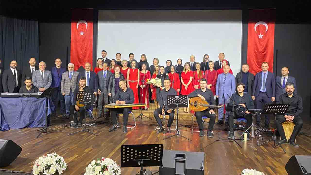 Şehit Erol Olçok Anadolu Lisesi salonunu dolduran davetliler tarafından sık sık ayakta alkışlanan konser etkinliğinde Serdivan Halk Eğitim Merkezinde oluşturulan Türk Sanat Müziği Korosu ülkemizin yetiştirdiği kıymetli bestekarlarımızın muhayyer, hicaz, nihavent makamlarındaki eserleri başarıyla icra ettiler.