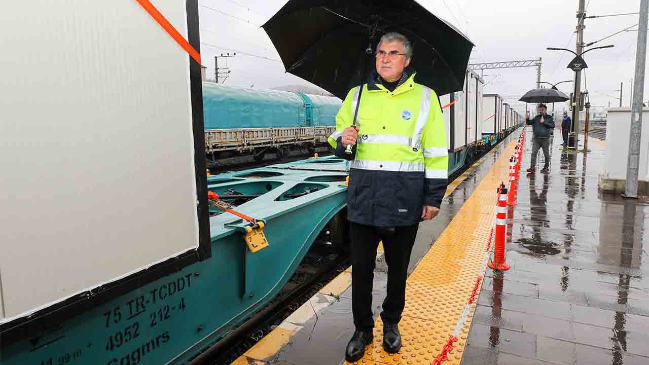 İskenderun’a kuracağımız 250 konteynerlik kardeşlik kentimiz için ilk 40 konteynerlerimizi geçen hafta trenlerle uğurladık. Bugün de burada 40 konteynerimizi göndermek için toplanmış bulunuyoruz. Bu 40 konteynerin yanında 150 adet soba, 1 tır (odun-kömür-su) gönderiyoruz. Gönderdiğimiz yardımlarla, konteynerlerle, kardeşlik kentleriyle dışarıda kimseyi bırakmayacağız inşallah” dedi.