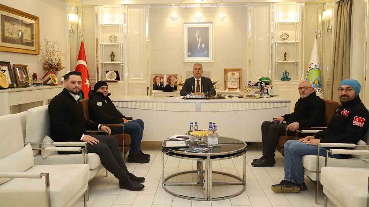 Kahramanmaraş’ın Pazarcık ilçesinde meydana gelen ve 11 ilde büyük yıkıma neden olan deprem felaketi sonrası Devlet- Millet dayanışmasının en güzel örneğini sergileyip arama kurtarma faaliyetlerinde fedakârlık gösteren Sakarya Arama Kurtarma Gönüllüleri Başkan Babaoğlu’nu Ana hizmet binasında bulunan makam odasında ziyaret etti. Sakarya Arama Kurtarma Ekip Lideri Erdal Aydın tarafından Arama Kurtarma Faaliyetlerine destek ve katkılarından ötürü Başkan Babaoğlu’na plaket takdim edilerek onursal üye unvanı verildiği açıklandı. Ekiplerle bir süre sohbet eden Başkan Babaoğlu, “Sizlerin hiçbir karşılık beklemeden ve gece ve gündüz ayırt etmeden yaptığınız fedakârlıkların yanında bizimki hiçbir şey” diyerek gönüllülere teşekkür etti.