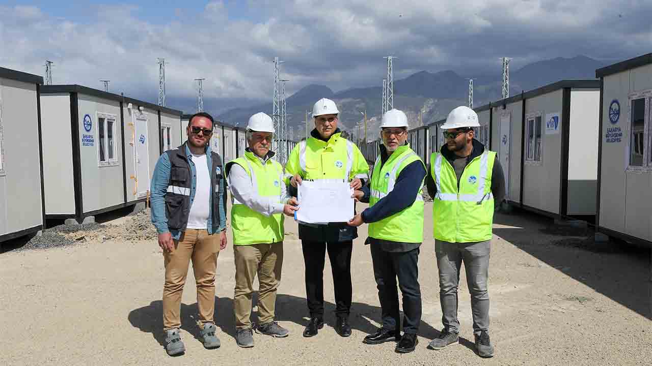 Başkan Ekrem Yüce ile Sakaryalı ekibi konteyner kentlerin kurulumdaki tüm teknik ayrıntıları inceliyor ve yaşam alanlarının depremzedelere en kısa sürede teslim edilmesi için hassasiyetle çalışıyor.