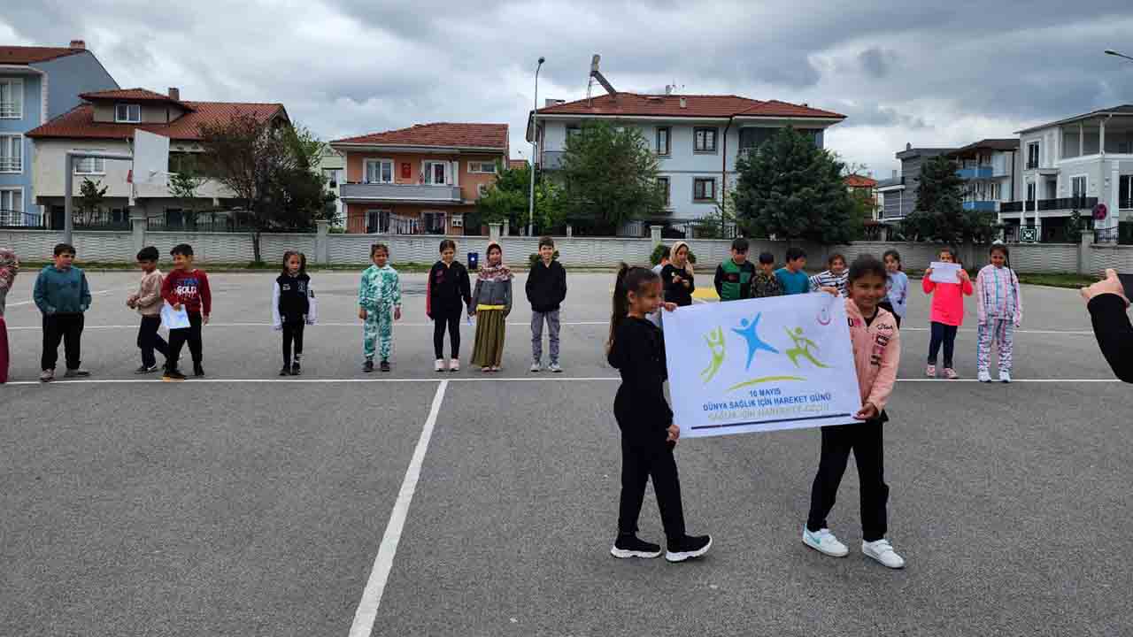 Hareket etmenin fiziksel ve ruhsal sağlığın korunmasına, geliştirilmesine ve bulaşıcı olmayan hastalıkların önlenmesine yönelik bilinçlendirme yapmak amacıyla Yunus Emre İlkokulu 3. sınıf öğrencileri öğretmenleri Uğur Çakmak, Gülşen Bölükbaşı ve Durmuş Akbayrak’ın öncülüğünde yürüyüş, ip atlama, top oynama faaliyetlerinde bulunarak kas-iskelet koordinasyonunu geliştiren hareketlerle farkındalık çalışmaları yaptılar.